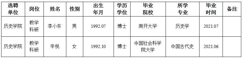 经用人单位及教学督导考核、学校研究,拟同意选聘下列人员来校工作,其聘任关系为A类人事代理。本着公平、公正、公开的原则,现将拟选聘人员基本情况公示如下: