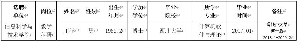 经用人单位推荐,人力资源部审查,学校教学督导及院系相关专家考核,米兰买球拟确定下列人员来校工作。本着公平、公正、公开的原则,现将本次拟选聘人员基本情况公示如下: