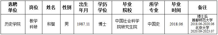 经用人单位及教学督导考核、学校研究,拟同意选聘下列人员来校工作,其聘任关系为人事代理。本着公平、公正、公开的原则,现将拟选聘人员基本情况公示如下: