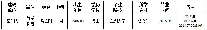 经用人单位及教学督导考核、学校研究,拟同意选聘下列人员来校工作,其聘任关系为人事代理。本着公平、公正、公开的原则,现将拟选聘人员基本情况公示如下: