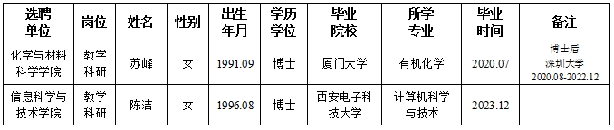 经用人单位推荐,人力资源部审查,学校教学督导及院系相关专家考核,学校专家评审会审议,米兰买球拟确定下列人员来校工作,聘任方式为参编选聘。本着公平、公正、公开的原则,现将本次拟选聘人员基本情况公示如下: