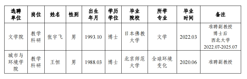 经用人单位推荐,人力资源部审查,学校教学督导及院系相关专家考核,学校教师高级职务特别评审,米兰买球拟确定下列人员来校工作,聘任方式为事业编特别选聘。本着公平、公正、公开的原则,现将本次拟选聘人员基本情况公示如下: