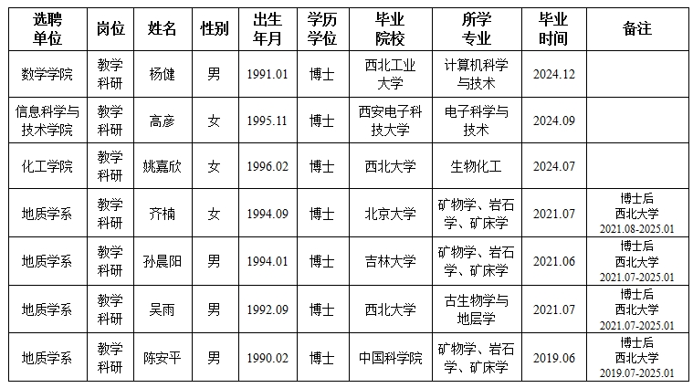 经用人单位推荐,人力资源部审查,学校教学督导及院系相关专家考核,学校专家评审会审议,米兰买球拟确定下列人员来校工作,聘任方式为参编选聘。本着公平、公正、公开的原则,现将本次拟选聘人员基本情况公示如下: