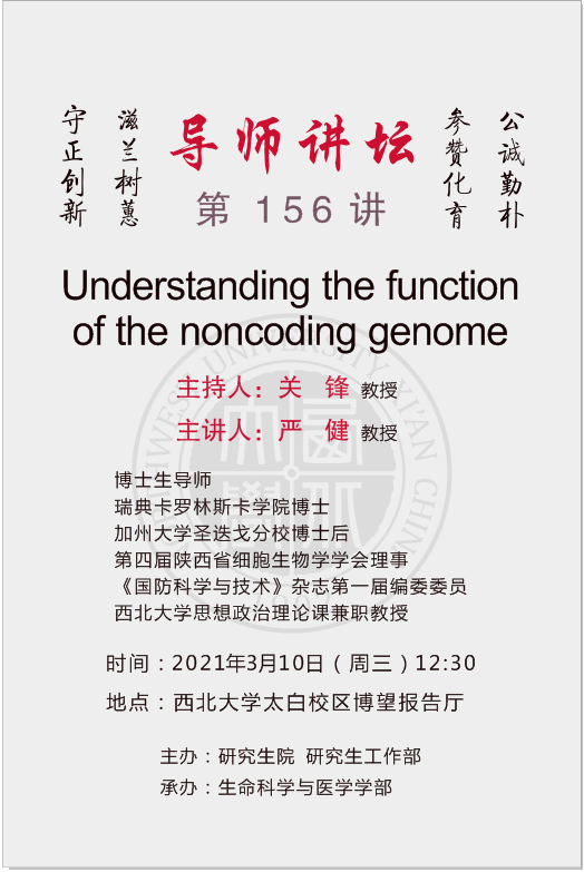 导师讲坛第156期:Understanding the function of the noncoding genome