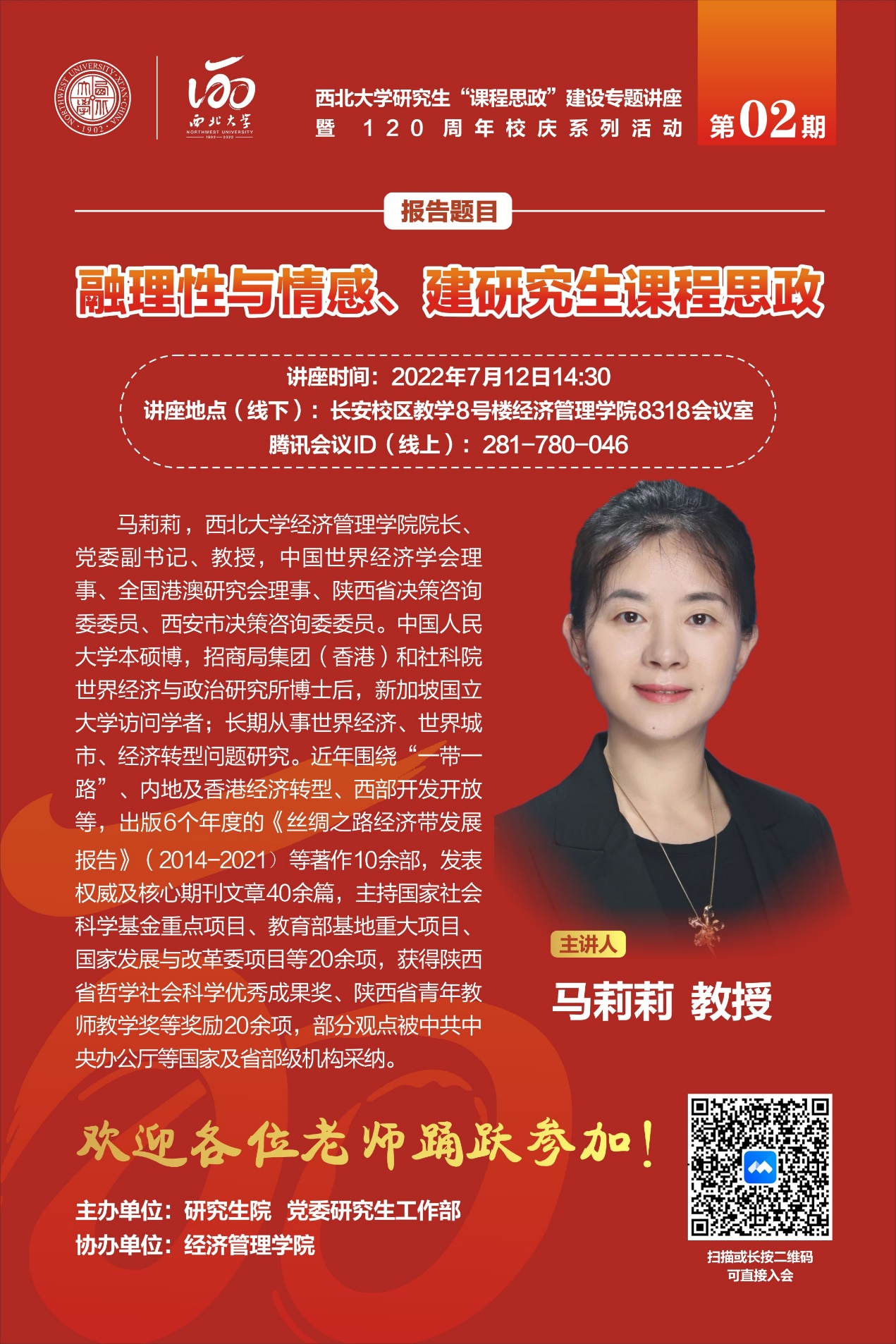 第2期,我们邀请到陕西省首批省级课程思政示范课程、教学团队负责人米兰买球经济管理学院马莉莉教授进行“课程思政”专题培训,欢迎对课程思政建设感兴趣的各位老师积极参加,拟申报2022年校级、省级及国家级研究生课程思政示范课的课程负责人、团队成员踊跃参与!