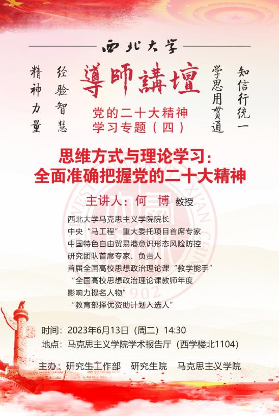 导师讲坛“党的二十大精神”学习专题(四):思维方式与理论学习:全面准确把握党的二十大精神