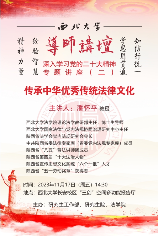 导师讲坛“深入学习党的二十大精神”专题讲座(二):传承中华优秀传统法律文化
