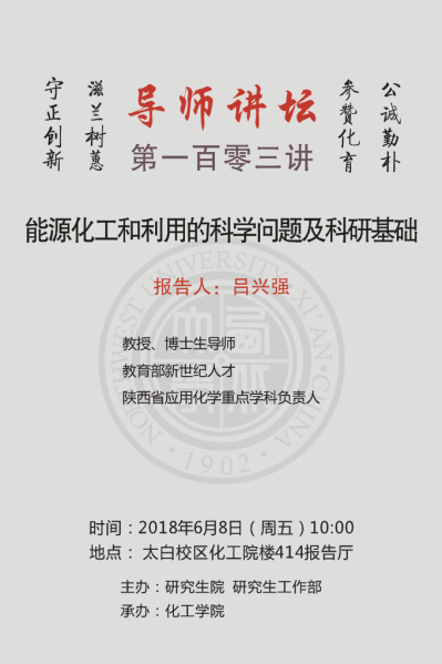 导师讲坛第103讲:能源化工和利用的科学问题及科研基础