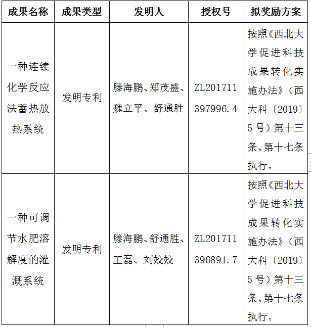 附件:拟转让成果信息及奖励方案