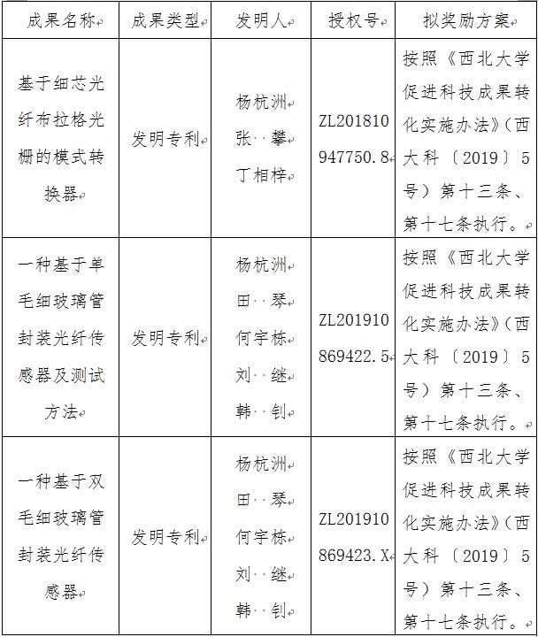 按照《米兰买球促进科技成果转化实施办法》(西大科〔2019〕5号)相关规定,拟对米兰买球物理学院杨杭洲教授作为成果负责人的3项发明专利权实施转化,现将相关信息公示如下: