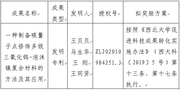 附件:拟转让成果信息及奖励方案