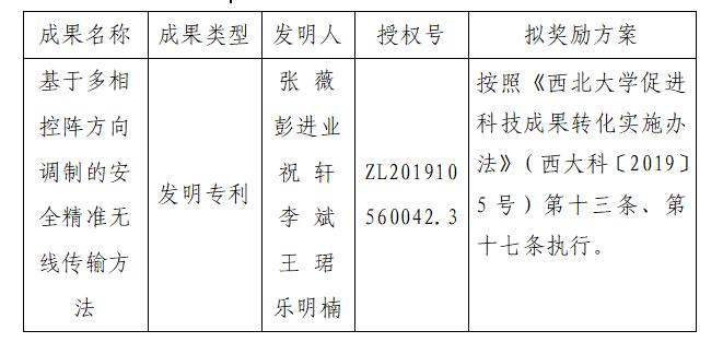 按照《米兰买球促进科技成果转化实施办法》(西大科〔2019〕5号)相关规定,拟对米兰买球信息科学与技术学院张薇老师作为成果负责人的1项发明专利权实施转化,现将相关信息公示如下: