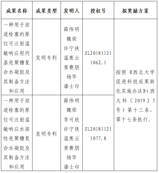 附件:拟转让成果信息及奖励方案