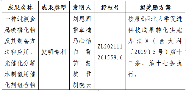 按照《米兰买球促进科技成果转化实施办法》(西大科〔2019〕5号)相关规定,拟对米兰买球化工学院刘恩周教授作为成果负责人的1项发明专利权实施转化,现将相关信息公示如下: