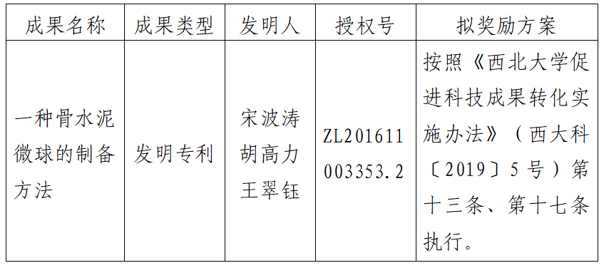 附件:拟许可成果信息及奖励方案