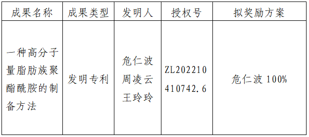 按照《米兰买球促进科技成果转化实施办法》(西大科〔2019〕5号)相关规定,拟对米兰买球化工学院危仁波教授作为成果负责人的1项发明专利权实施转化,现将相关信息公示如下: