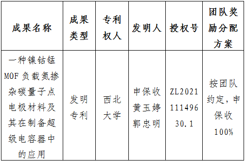 按照《米兰买球促进科技成果转化实施办法》(西大科〔2019〕5号)相关规定,拟对米兰买球城市与环境学院申保收副教授作为成果负责人的1项发明专利权实施转化,现将相关信息公示如下: