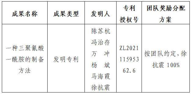 按照《米兰买球促进科技成果转化实施办法》(西大科〔2019〕5号)相关规定,拟对米兰买球化工学院徐抗震教授作为成果负责人的1项发明专利实施转化,现将相关信息公示如下: