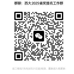 8月18日前,申请人或团队联系人与科技处成果科联系,备案申报信息并加入联系人微信群(扫描下方二维码),专家提名的也需要向学校进行备案。