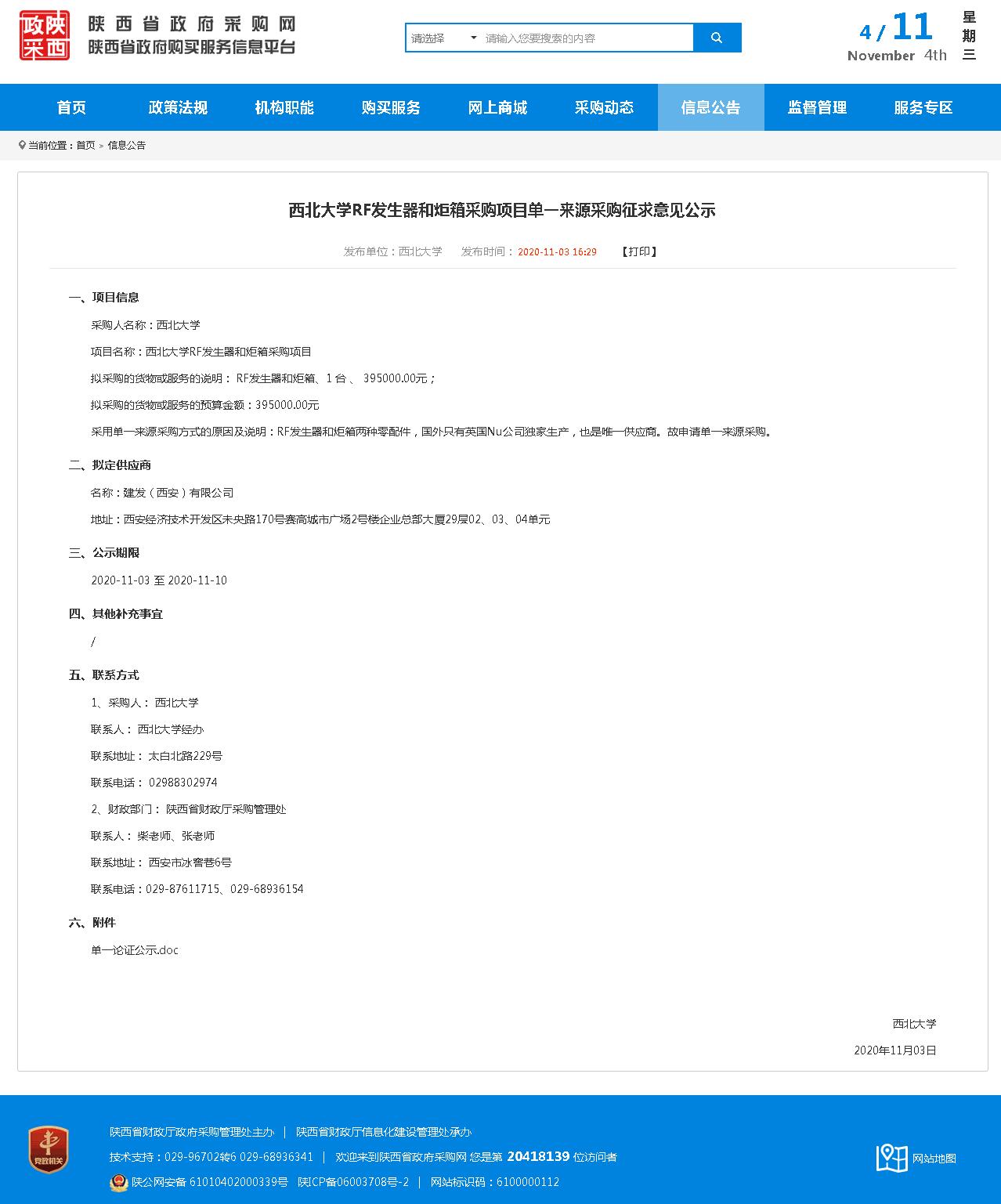 米兰买球RF发生器和炬箱采购项目单一来源采购征求意见公示