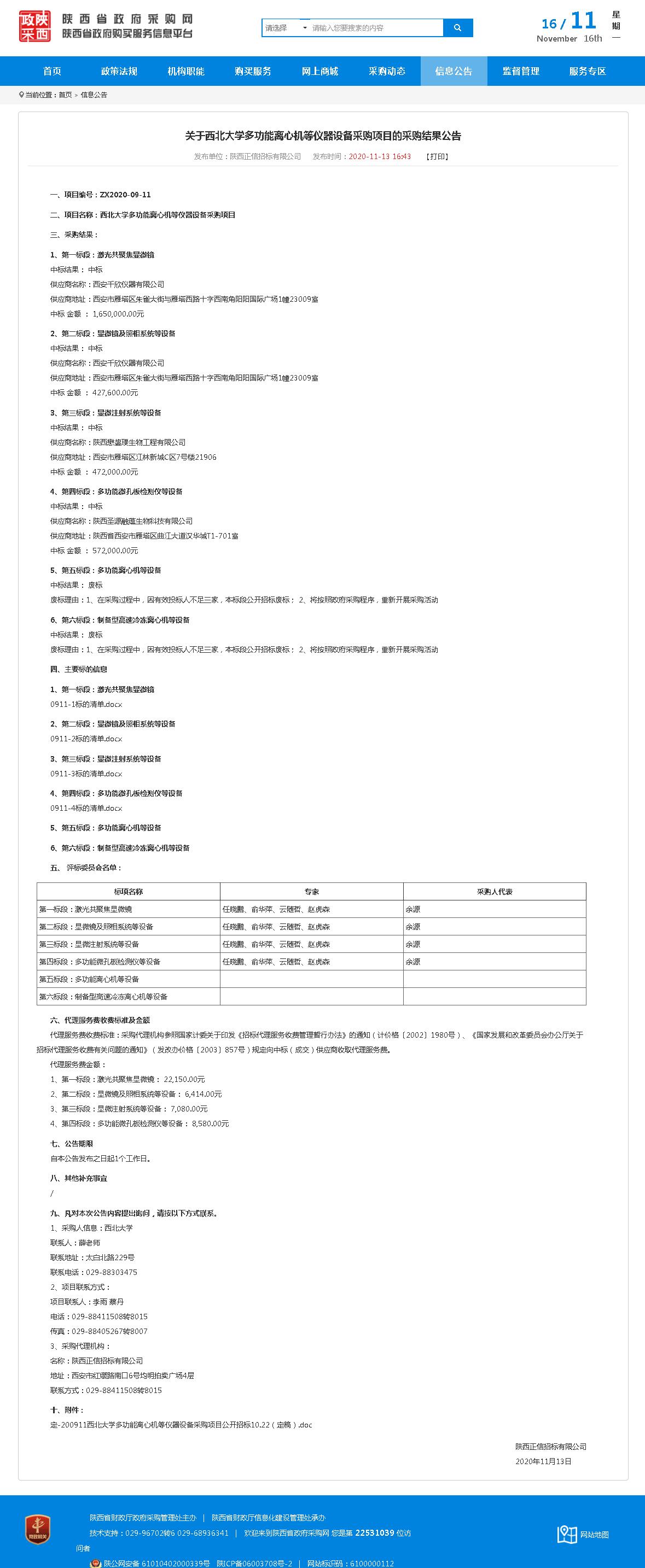 关于米兰买球多功能离心机等仪器设备采购项目的采购结果公告