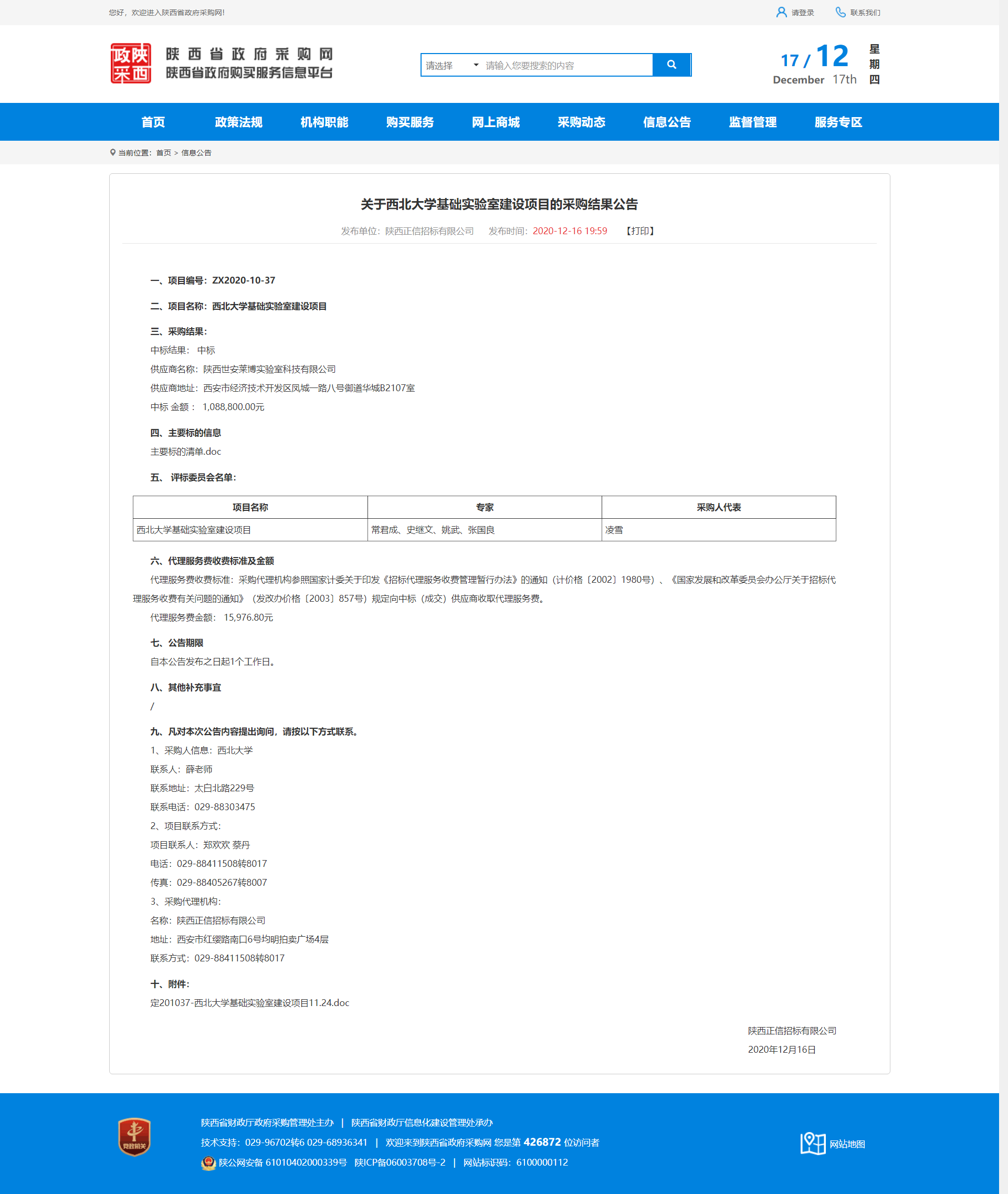 关于米兰买球基础实验室建设项目的采购结果公告 作者: 编辑:薛利娟 时间:2020-12-17 原公告地址:http://www.ccgp-shaanxi.gov.cn/notice/noticeDetail.do?noticeguid=8a85be33765f9dd001766b69b5de2728