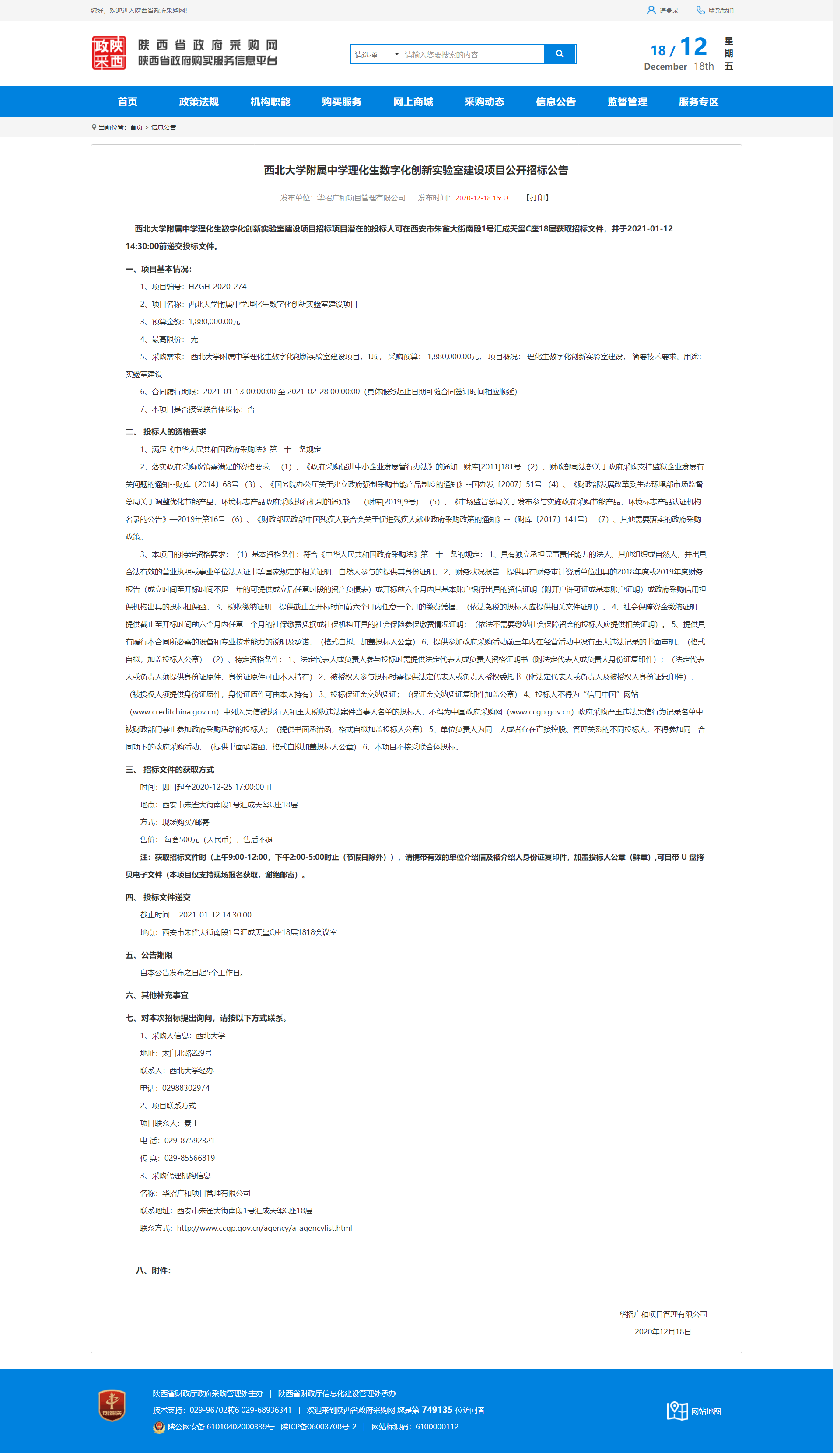 米兰买球附属中学理化生数字化创新实验室建设项目公开招标公告 作者: 编辑:薛利娟 时间:2020-12-18 原公告地址:http://www.ccgp-shaanxi.gov.cn/notice/noticeDetail.do?noticeguid=8a85be32765f9c9b017674de4e727a0f