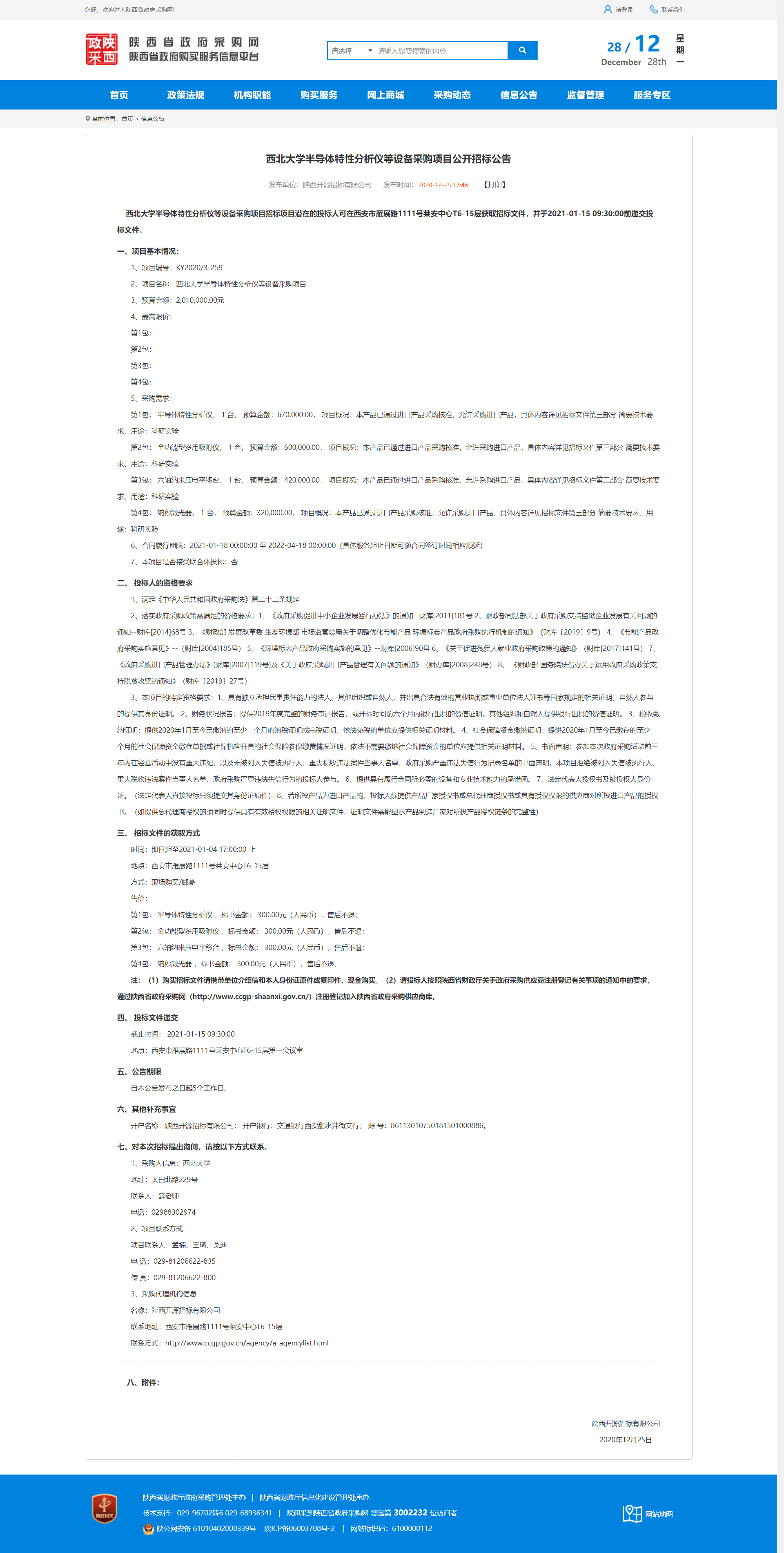 米兰买球半导体特性分析仪等设备采购项目公开招标公告 作者: 编辑:薛利娟 时间:2020-12-28 原公告链接:http://www.ccgp-shaanxi.gov.cn/notice/noticeDetail.do?noticeguid=8a85be34769784fa0176994262042b99