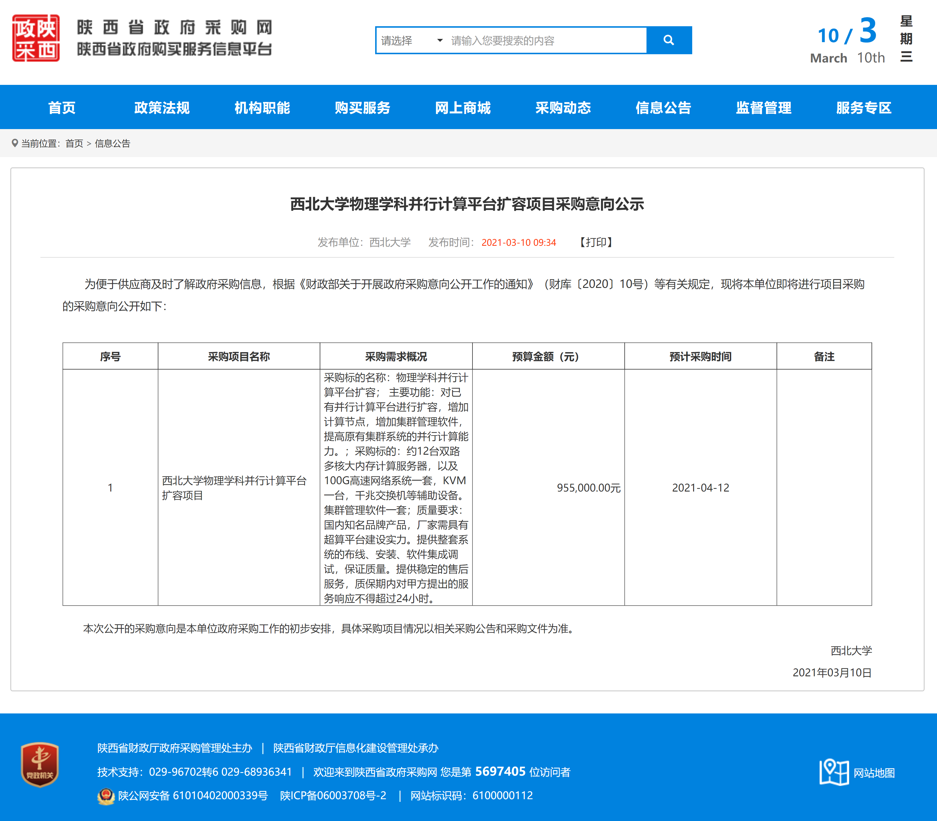 米兰买球物理学科并行计算平台扩容项目采购意向公示