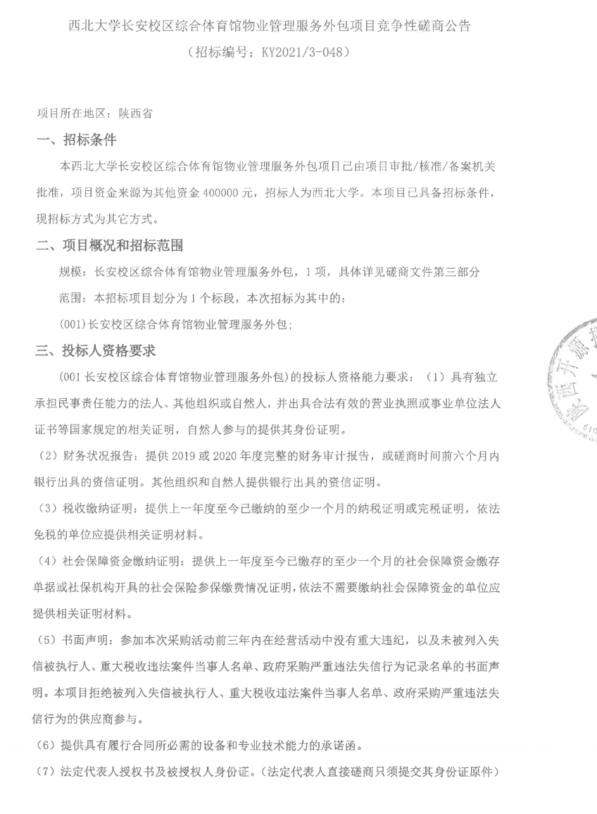 米兰买球长安校区综合体育馆物业管理服务外包项目竞争性磋商公告