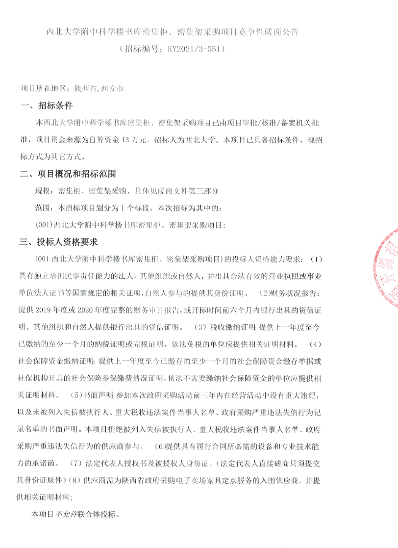 米兰买球附中科学楼书库密集柜、密集架采购项目竞争性磋商公告