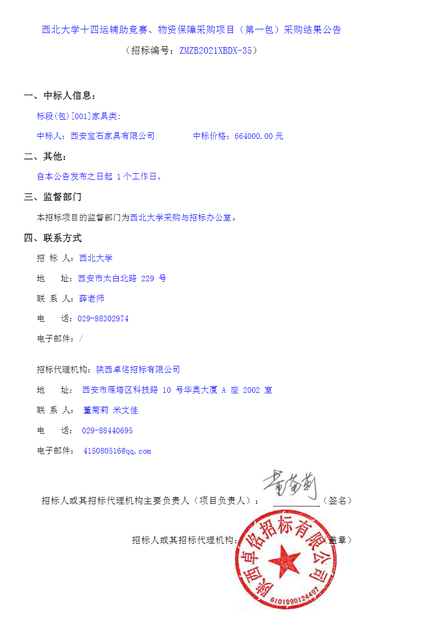 米兰买球十四运辅助竞赛、物资保障采购项目(第一包)中标结果公告