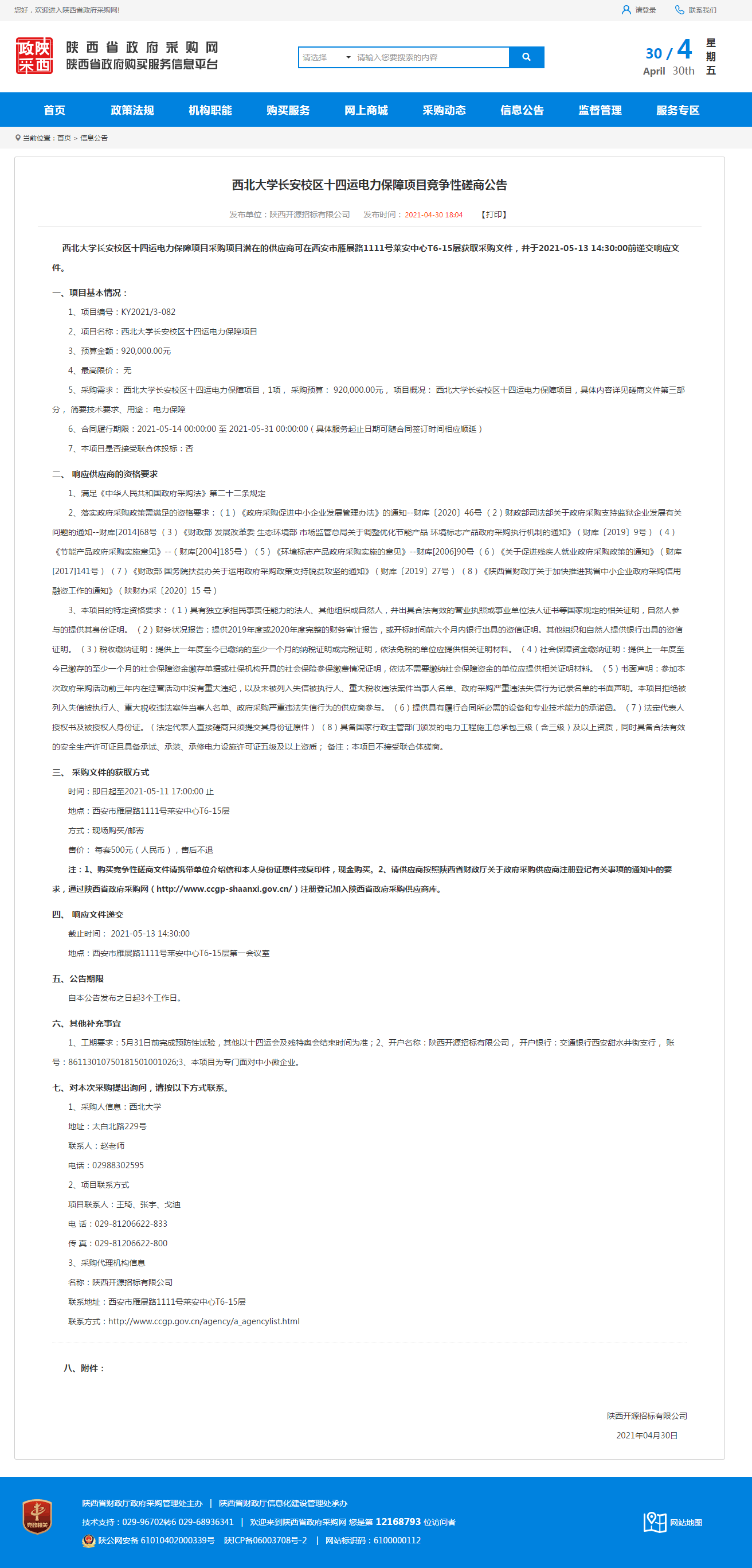 米兰买球长安校区十四运电力保障项目竞争性磋商公告