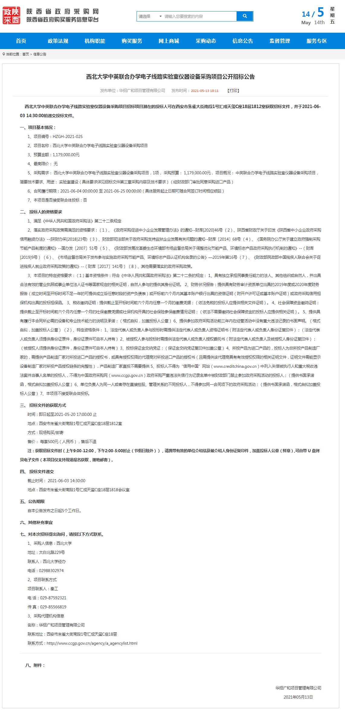 米兰买球中英联合办学电子线路实验室仪器设备采购项目公开招标公告