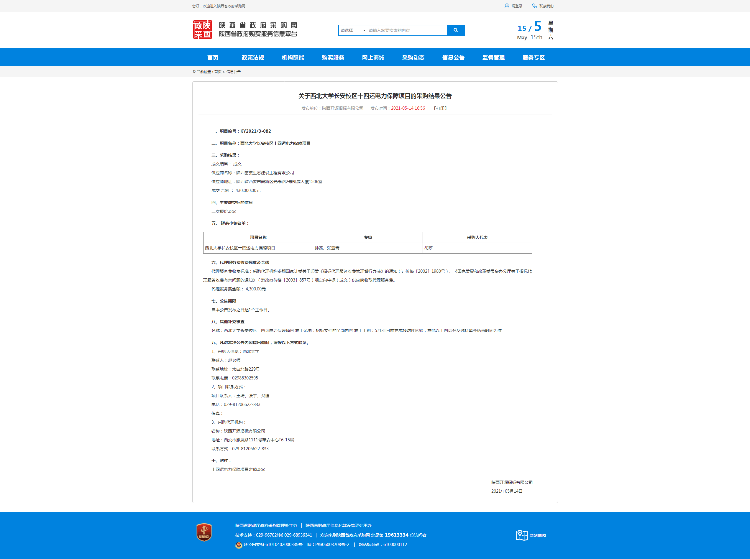 关于米兰买球长安校区十四运电力保障项目的采购结果公告