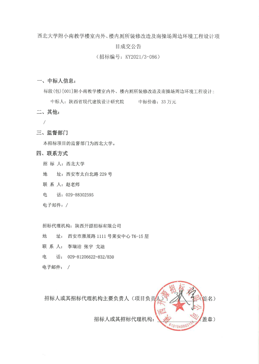 米兰买球附小南教学楼室内外、楼内厕所装修改造及南操场周边环境工程设计项目成交公告