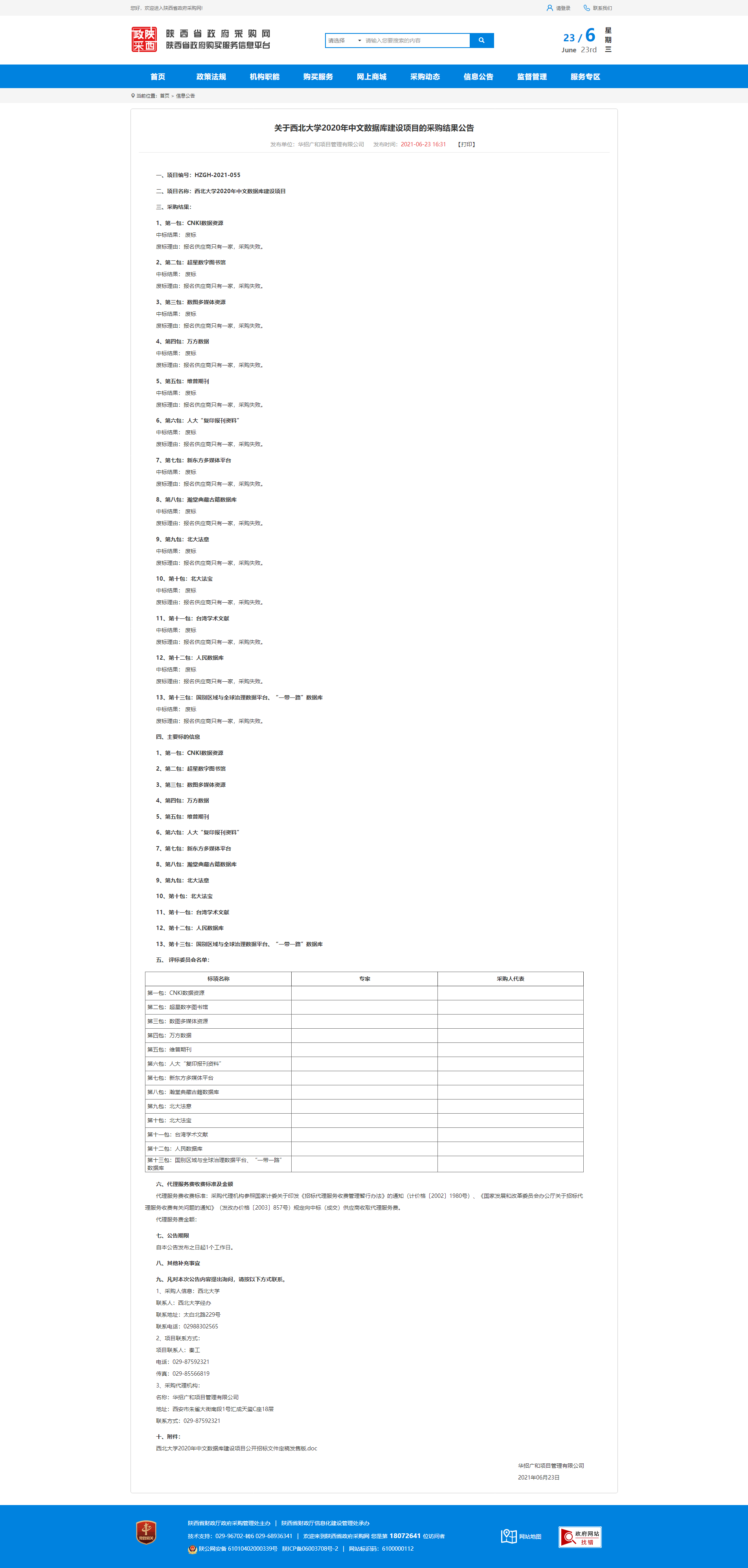 关于米兰买球2020年中文数据库建设项目的采购结果公告