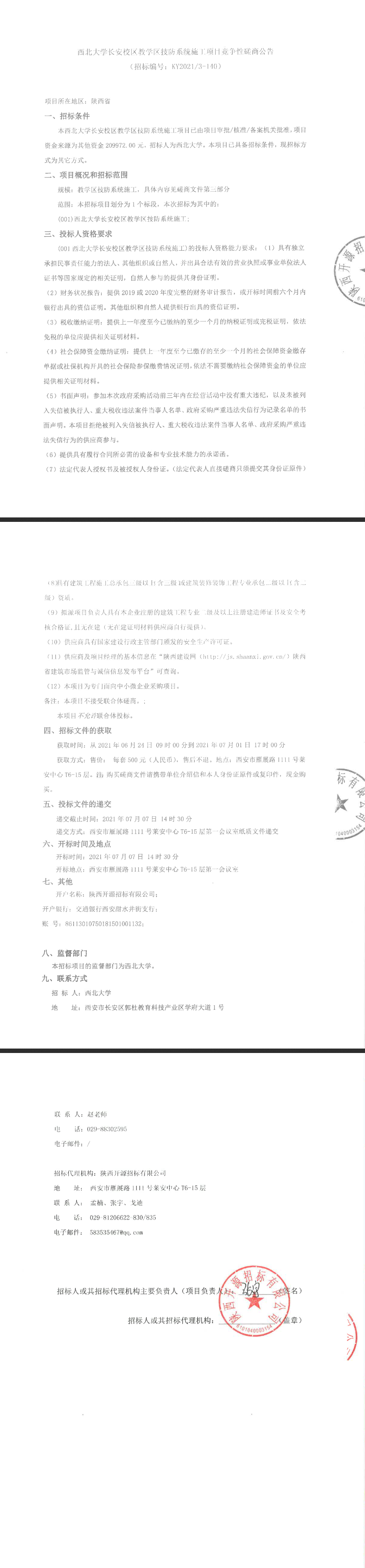 米兰买球长安校区教学区技防系统施工项目竞争性磋商公告