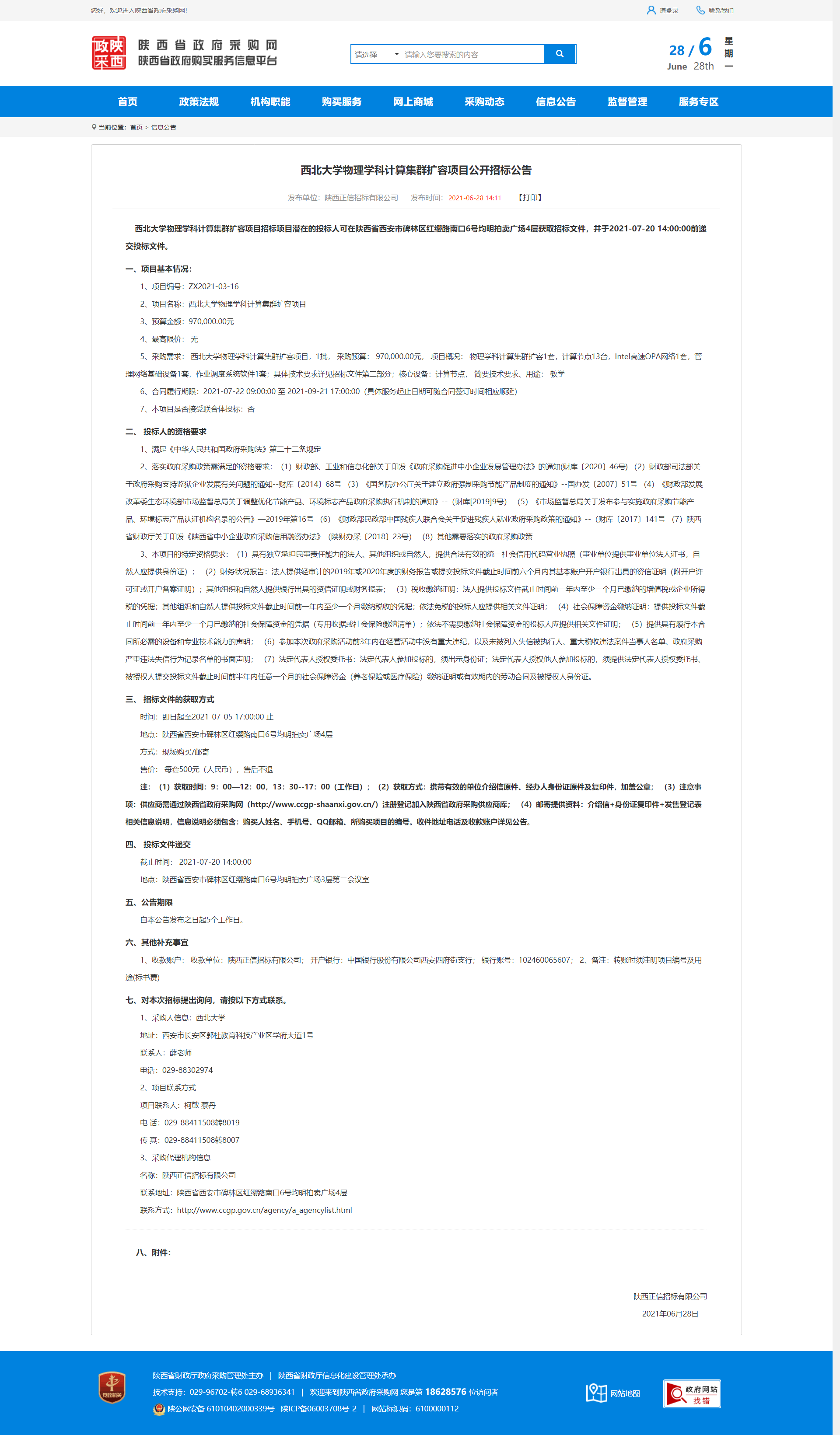 米兰买球物理学科计算集群扩容项目公开招标公告 作者: 编辑:采购与招标办公室 时间:2021-06-28 原公告地址:http://www.ccgp-shaanxi.gov.cn/notice/noticeDetail.do?noticeguid=8a85be33791baa0f017a50f2f9203176