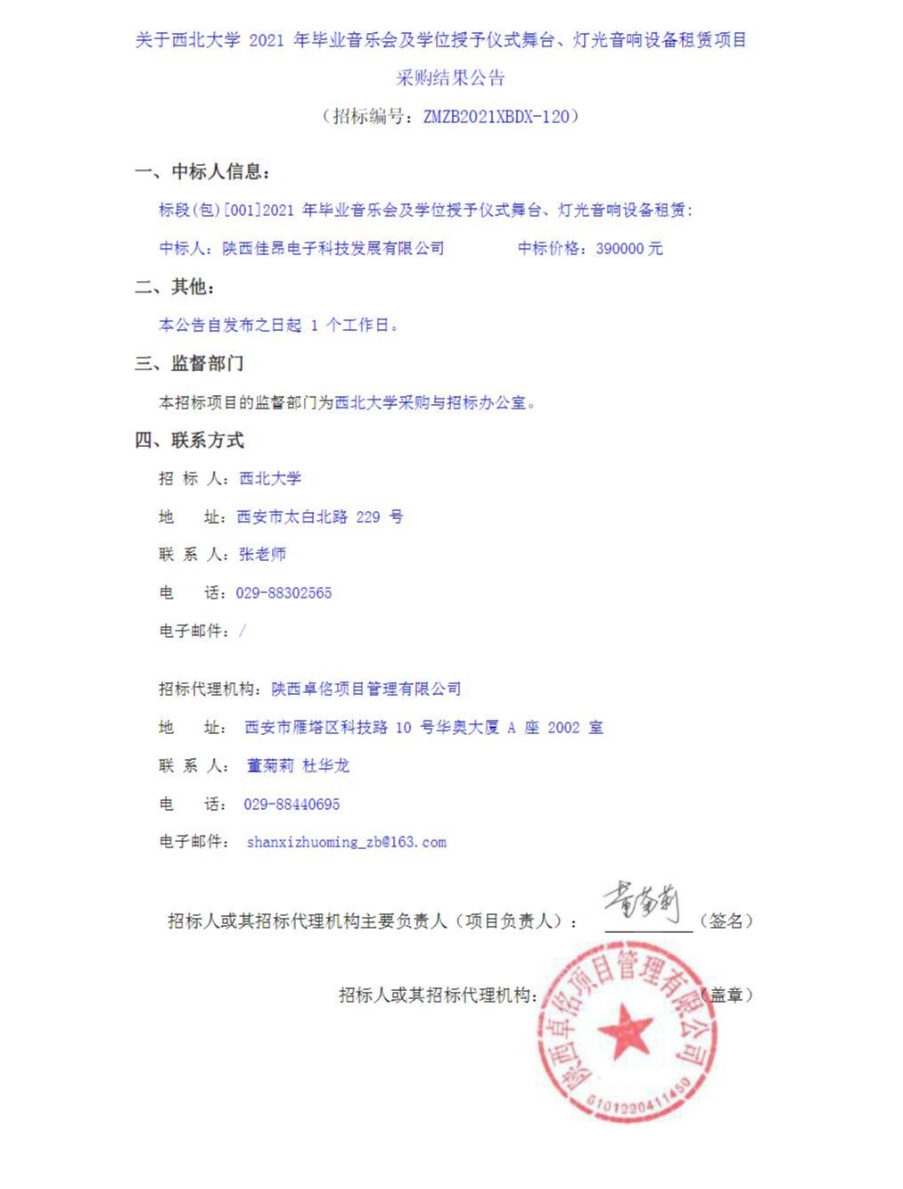 关于米兰买球2021年毕业音乐会及学位授予仪式舞台、灯光音响设备租赁项目采购结果公告