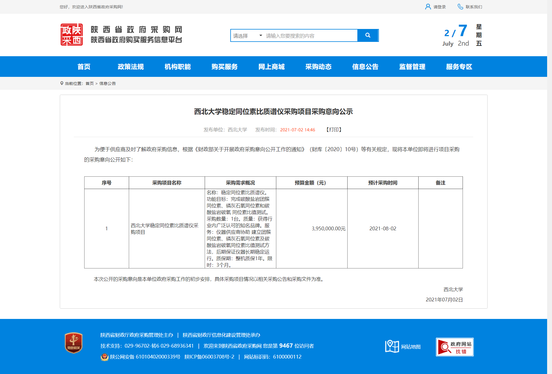 米兰买球稳定同位素比质谱仪采购项目采购意向公示 作者: 编辑:采购与招标办公室 时间:2021-07-02 原公告地址:http://www.ccgp-shaanxi.gov.cn/notice/noticeDetail.do?noticeguid=8a85be317a51dcbc017a65e4a5e21daf