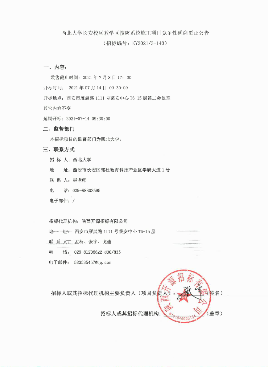 米兰买球长安校区教学区技防系统施工项目竞争性磋商更正公告
