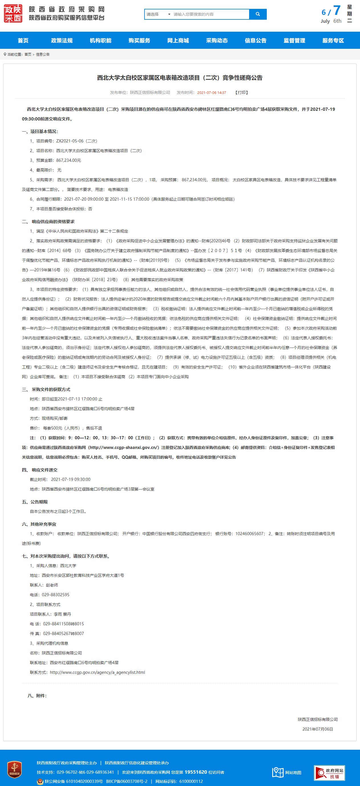 米兰买球太白校区家属区电表箱改造项目(二次)竞争性磋商公告