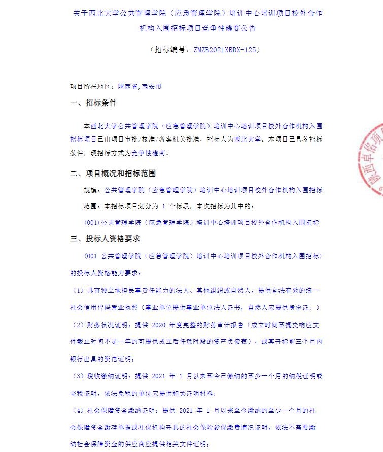 关于米兰买球公共管理学院(应急管理学院)培训中心培训项目校外合作机构入围招标项目竞争性磋商公告