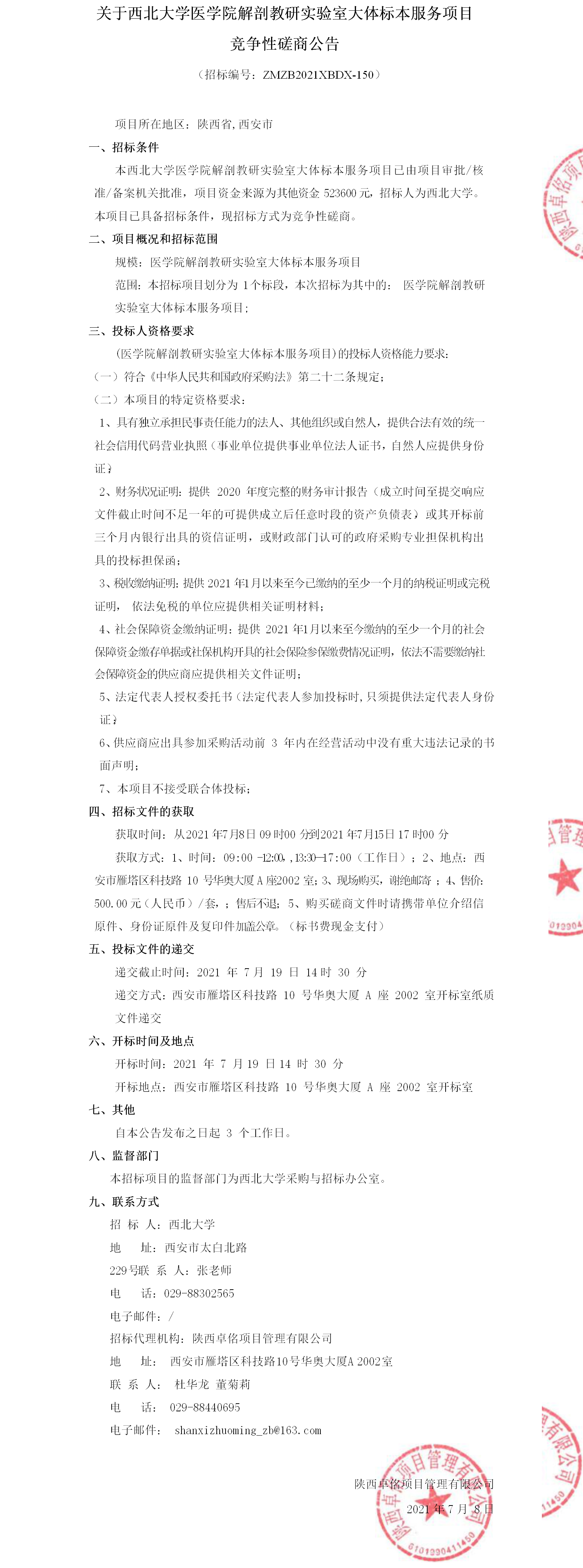 关于米兰买球医学院解剖教研实验室大体标本服务项目竞争性磋商公告
