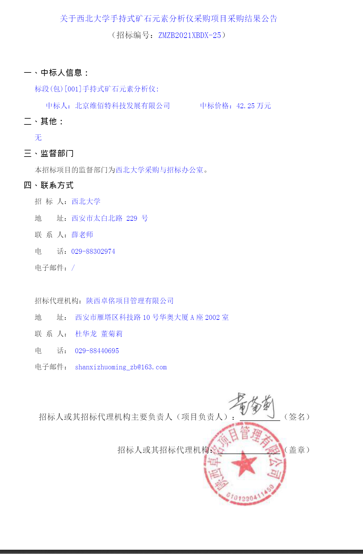 关于米兰买球手持式矿石元素分析仪采购项目采购结果公告