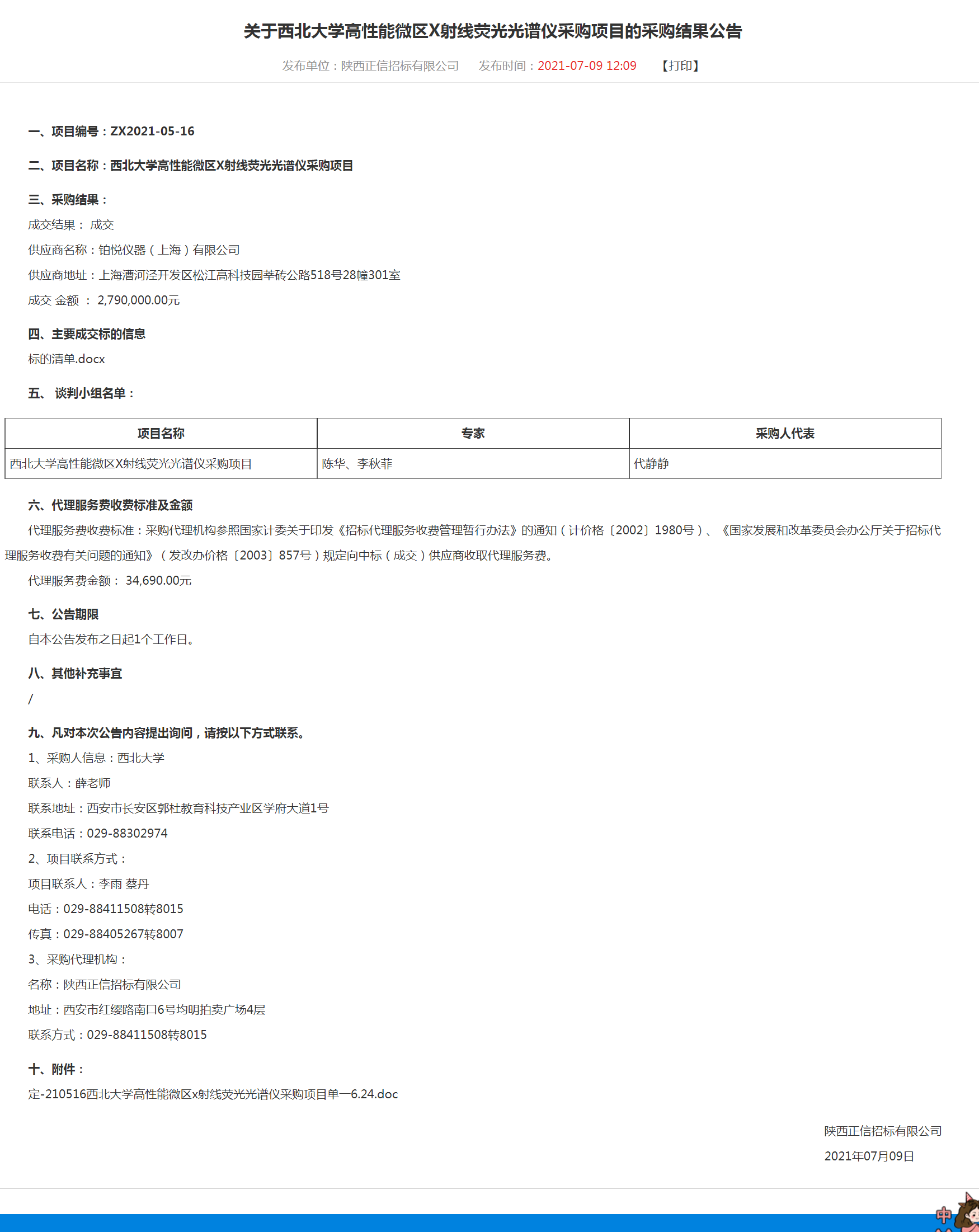 关于米兰买球高性能微区X射线荧光光谱仪采购项目的采购结果公告