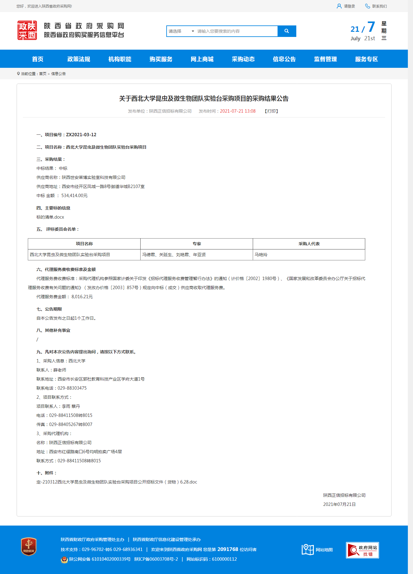 关于米兰买球昆虫及微生物团队实验台采购项目的采购结果公告 作者: 编辑:采购与招标办公室 时间:2021-07-21 原公告地址:http://www.ccgp-shaanxi.gov.cn/notice/noticeDetail.do?noticeguid=8a85be347a795e58017ac68e08ff1739