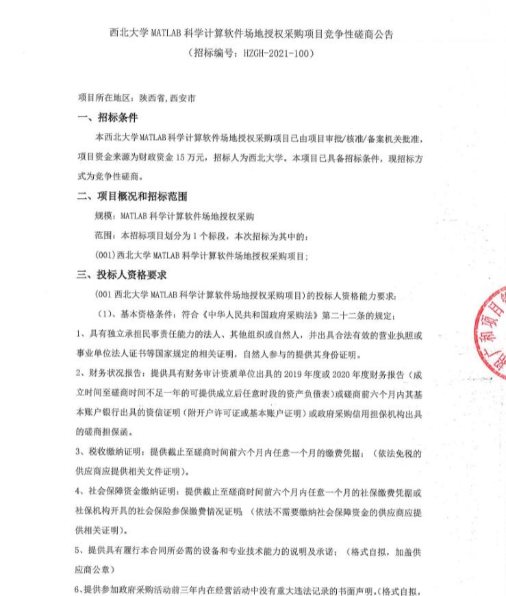 关于米兰买球MATLAB科学计算软件场地授权采购项目竞争性磋商公告