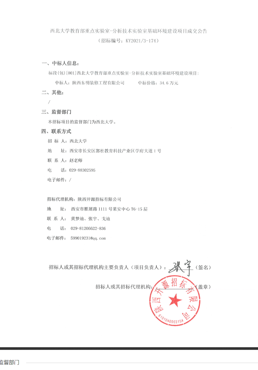 米兰买球教育部重点实验室-分析技术实验室基础环境建设项目成交公告